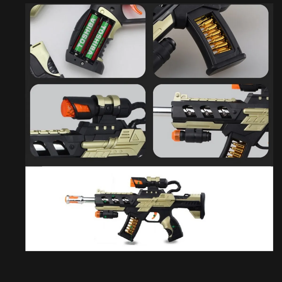 – Ametralladora con luz, sonido y mira infrarrojo. Juguete para niños.