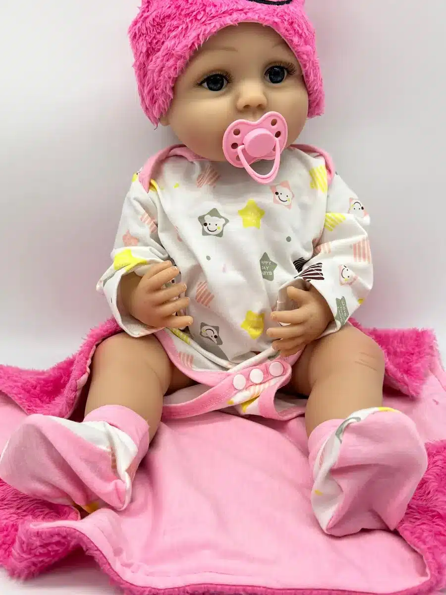 Hermoso bebote reborn realista, ideal para juego o colección. Cuenta con detalles delicados, expresión tierna, chupete incluido y terminaciones cuidadas que lo hacen ver muy natural. Medidas aproximadas: Alto: 48 cm Ancho: 15 cm aprox. Textura suave al tacto Vestimenta incluida (según imágenes) Ideal para regalar Un bebote reborn grande, realista y encantador, perfecto para sorprender