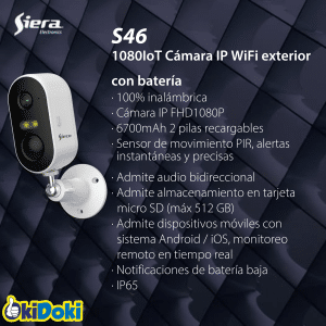 Cámara de seguridad WiFi exterior recargable Sieco S46.