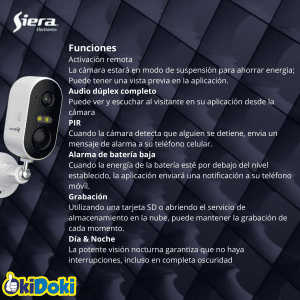 Batería y almacenamiento: Incluye una batería recargable de 6700mAh con hasta 3 meses de autonomía y opciones de almacenamiento local (tarjeta microSD) y en la nube