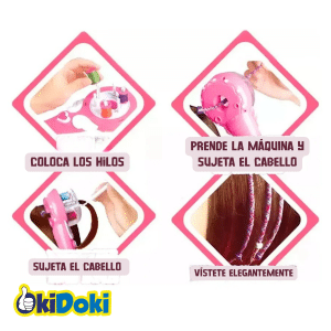 Fácil de usar: Simplemente coloca los hilos, ajusta la máquina al cabello y enciéndela para crear trenzas y diseños únicos. ¡Es tan fácil como apretar un botón!