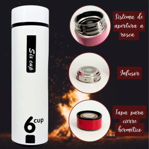 En combinación con la capacidad de conservar la temperatura de los líquidos fríos o calientes, este termo está hecho completamente de acero inoxidable, por lo que es irrompible e imposible de oxidar en condiciones normales de uso diario.