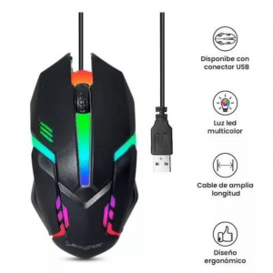 ¡Disfruta de la experiencia gamer! y sumérgete en tu juego favorito con el mouse de 3 botones e iluminación RGB. Diseño ergonómico: El diseño de ranura personalizado en ambos lados se adapta perfectamente a las manos. ¡Obtendrás una experiencia personalizada! El sensor óptico de alta definición te permite controlar el cursor hasta por 1000 DPI, para un seguimiento de pantalla más preciso. Posee un cable de 130cm, rueda de desplazamiento antideslizante y retroiluminación RGB de 7 colores. ¡Conecta el cable USB y juega! No necesita controladores ni programas, simplemente conéctalo a tu pc y listo. Compatible con Windows 10, 7, Linux, Mac OS o superior.