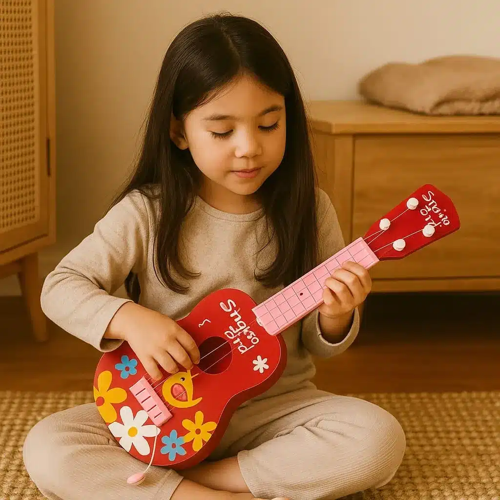 ¡Introduce a los más pequeños al mágico y alegre mundo de la música con nuestros encantadores ukeleles de juguete! Perfectamente diseñados para manos pequeñas, estos instrumentos no solo son un adorable juguete, sino una fantástica herramienta para despertar la curiosidad musical, el ritmo y la creatividad en los niños desde temprana edad.